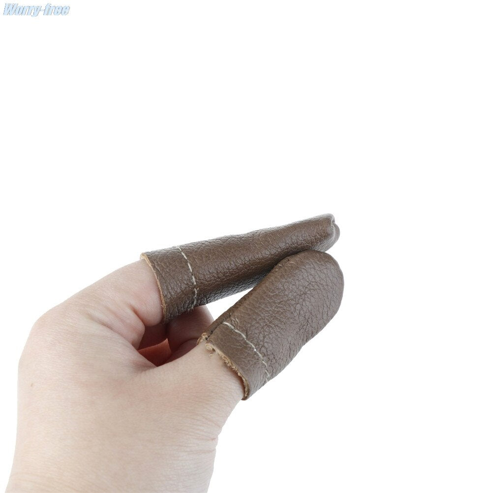 Each set includes two thimbles in practical sizes to fit most adult fingers (approx. 5.5 x 3 cm and 6.5 x 3 cm). The open-end design makes them easy to slip on and off, while the textured surface helps maintain control when pushing needles through thicker fabrics. Unlike rigid plastic thimbles, these faux leather versions adapt to the shape of your finger and maintain good airflow to reduce sweating and discomfort.